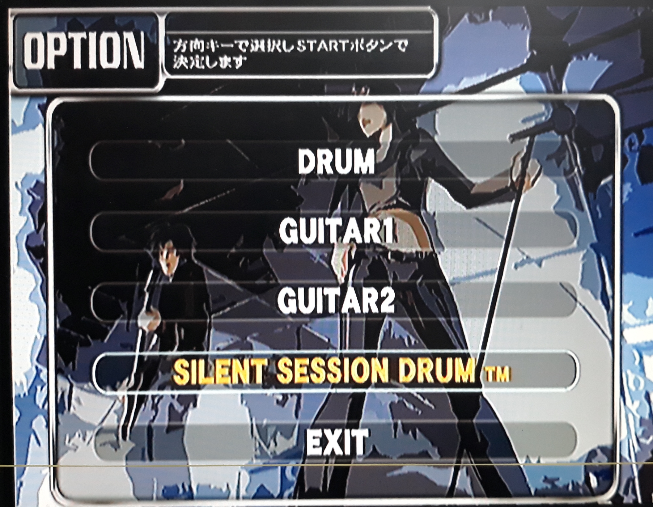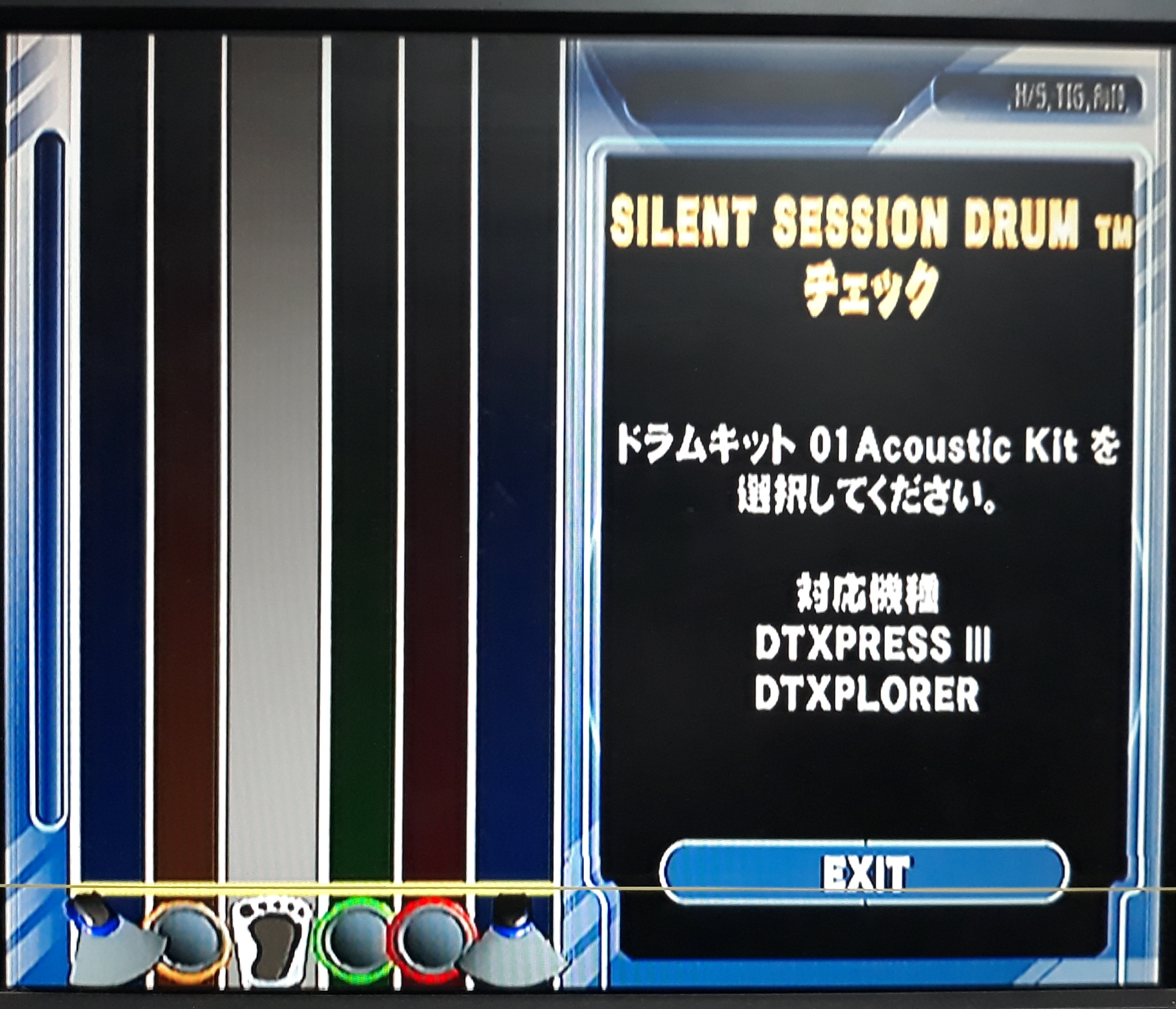 모드를 선택하면 듀얼쇼크 패드가 연결되어 있어야 한다는 문구 다음으로 이러한 화면이 나오며, 멈추어 있는 빈 노트창에 박자에 맞춰 사물놀이?를 할 수 있는것과 패드입력 및 감도 테스트를 할 수 있습니다. 기타도라와 달리 6라인이라고 놀고 있는 장치가 없게끔 하기 위해서인지 하이햇 페달과 레프트 심벌 플로우 탐도 키맵핑이 되어 있다는것도 해당 모드를 통해 알게 되었다는... 전자 드럼만으로 종료가 안되는 모드중 하나이기도 합니다.