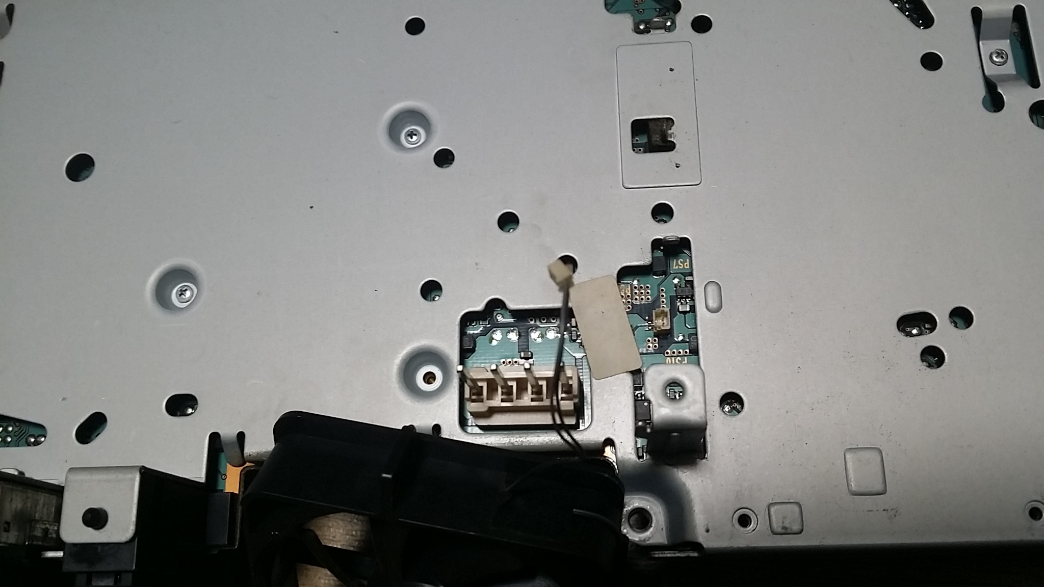 3000X 모델기준 상판분리후 뒤짚으면 이와 같으며 전원보드의 볼트 4개를 풀러줍니다. 다음으로 보드를 위로 뽑아올려 플러그를 분리. 그전에 플스2의 파워 스위치와 연결된 케이블도 분리해 주어야 합니다.
